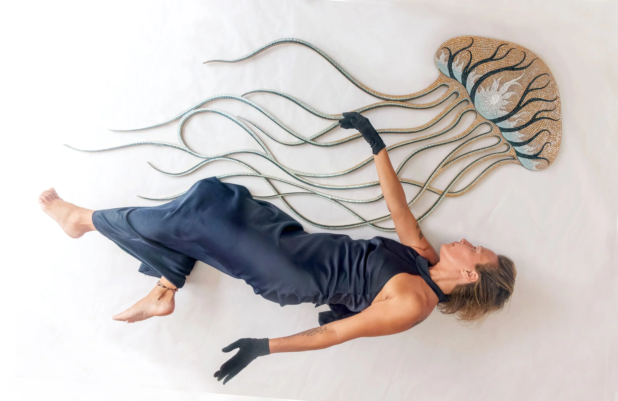 Swarovski crystals on painted aluminium shape.